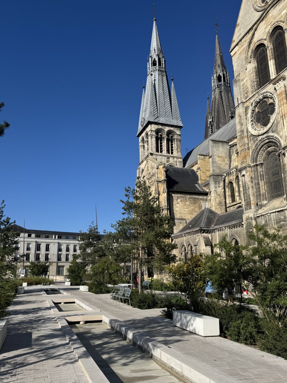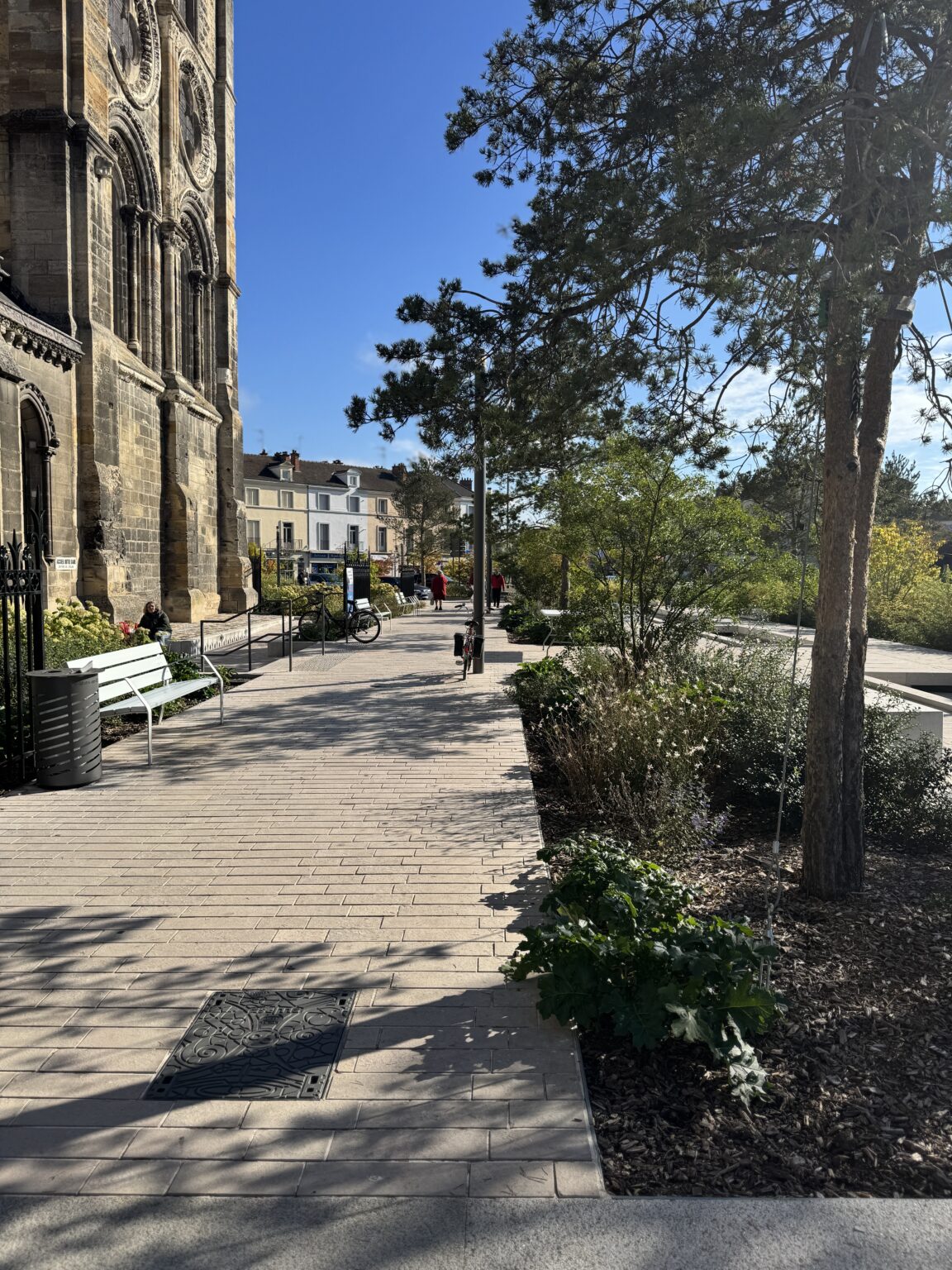 L’enjeu principal du projet consiste à pacifier l’ensemble du secteur Notre-Dame pour le relier spatialement au secteur de l’Hôtel de Ville. Le positionnement du pôle bus à l’arrière du projet va dans le sens de libérer la rue de Vaux, de manière à permettre l’émergence d’un nouvel espace à la place du giratoire Jean Talon. Il ne s’agit pas de sanctuariser les abords de la Collégiale, mais de proposer un projet dynamique où chaque usager bénéficie d’espaces et de fonctions adaptés. Pour cette raison, le pôle bus doit trouver sa place fonctionnelle sur les rues Léon Bourgeois, Grande Étape et sur la place Tissier.
