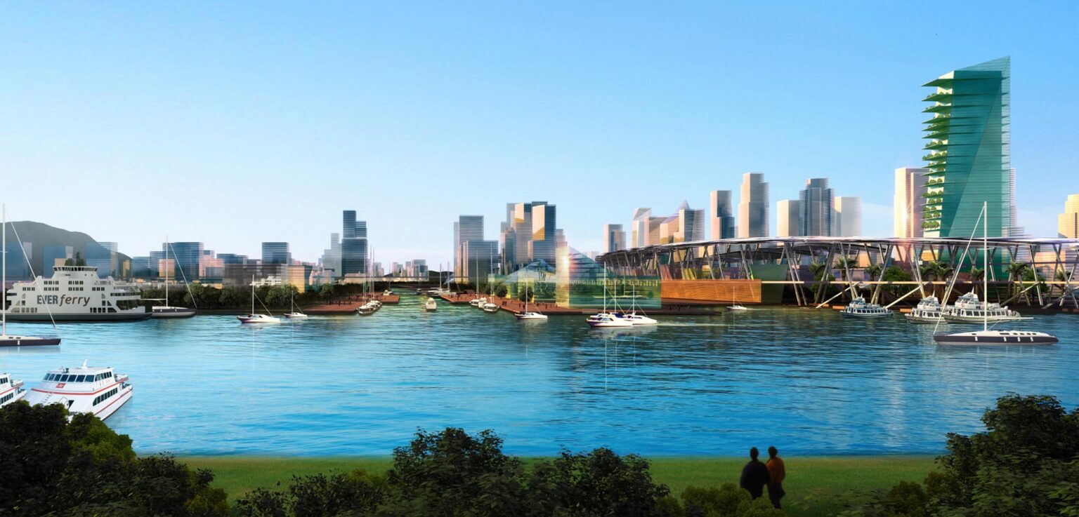 Historiquement, l’ostréiculture a organisé ce territoire en créant une trame orthogonale de canaux, de chemins sur digues et de bassins de cultures. Certains secteurs ont développé des écosystèmes spécifiques, tels que des mangroves. Le programme du concours vise à développer une nouvelle ville qui atteindra une population de 300 000 habitants dans les 20 prochaines années, s’inscrivant ainsi dans un réseau de villes emblématiques du dynamisme économique de la Chine, telles que Hong Kong, Shenzhen et Macao.