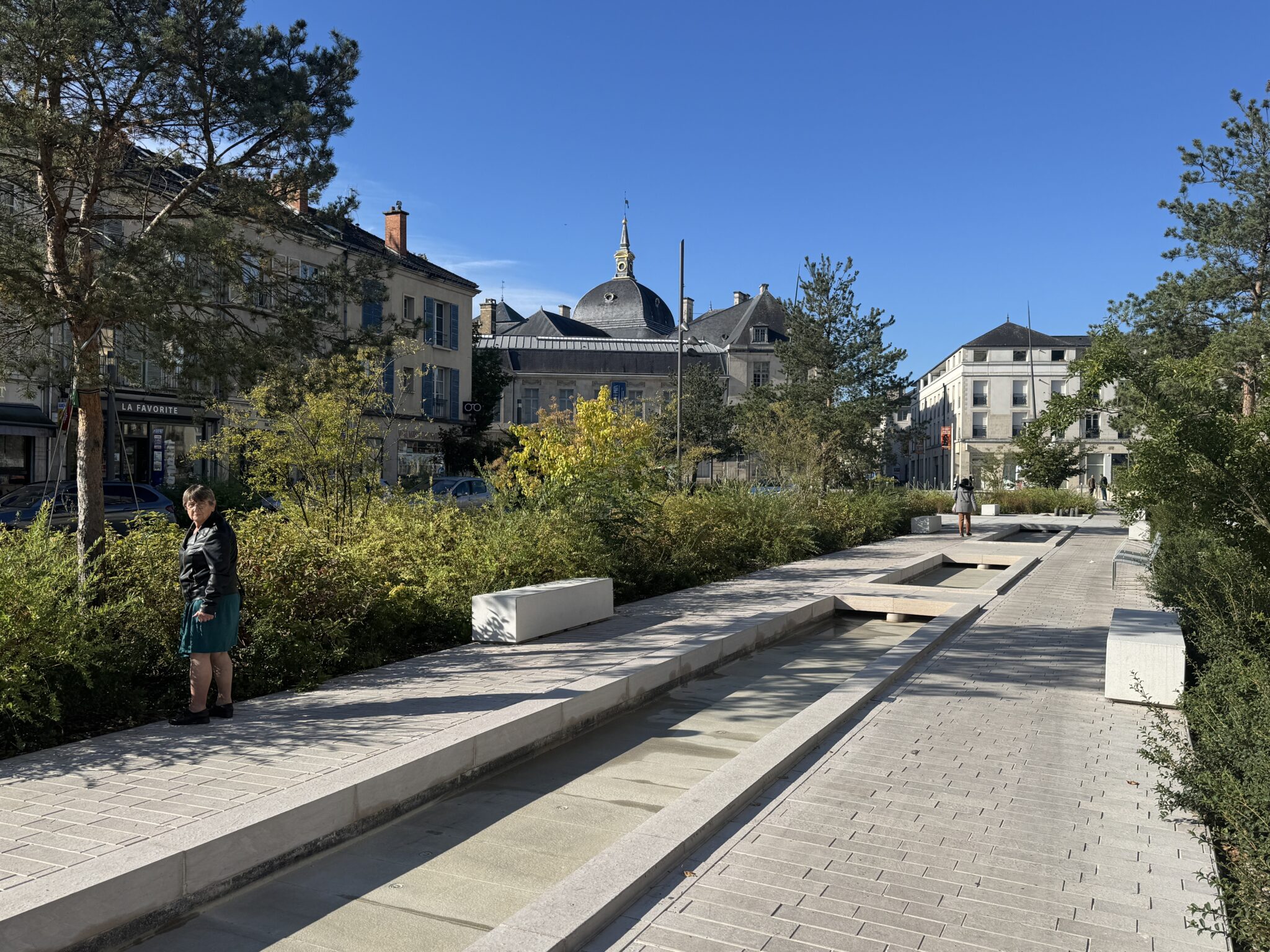 Il s’agit d’insérer ce TCSP performant en position axiale et de requalifier l’ensemble des espaces publics des communes traversées de façade à façade. Dans des emprises contraintes, l’aménagement doit intégrer des itinéraires cyclables (bandes sur chaussée) ou pistes (à niveau du trottoir) selon les villes, garantir un maximum de stationnements tout en offrant autant que possible une présence végétale très importante.